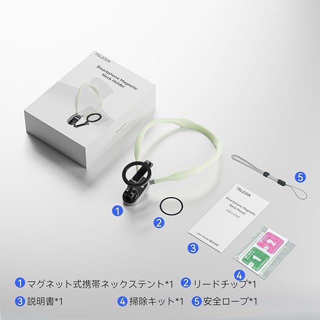 【手を解放してくれる素敵なパッケージ内容です】マグネットネックレスホルダー×1、磁気吸引板です×1、説明書×1、ロープ×1(ビデオ教育を見て使用可能)、TELESIN°はお客様のショッピング体験とお客様の満足度を高めることに力を入れています。
