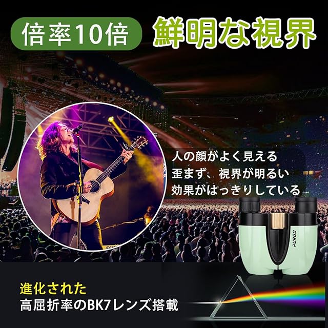 商品名:PUROO 双眼鏡 10x25 グリーン 旅行 アウトドア 登山 野鳥観察 軽量 コンパクト 観光用