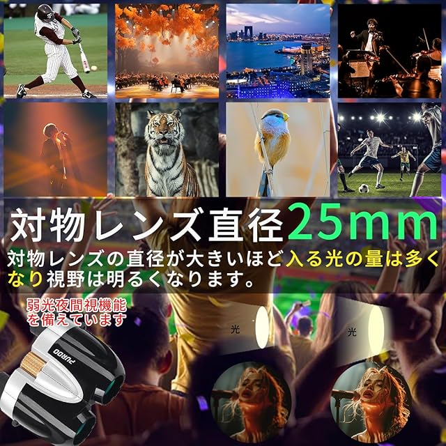 商品名:PUROO 双眼鏡 10x25 ブラック 高倍率 スポーツ観戦 ライブ コンサート 旅行 軽量 小型 メンズ レディース