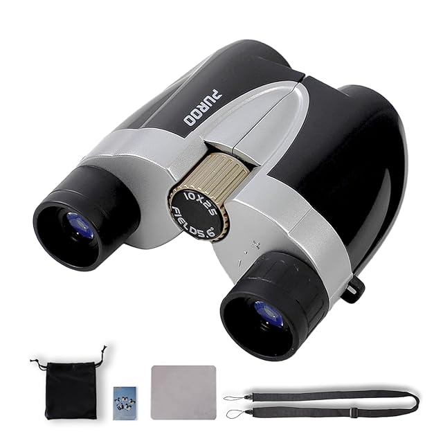 PUROO 双眼鏡 10x25 ブラック 高倍率 スポーツ観戦 ライブ コンサート 旅行 軽量 小型 メンズ レディース