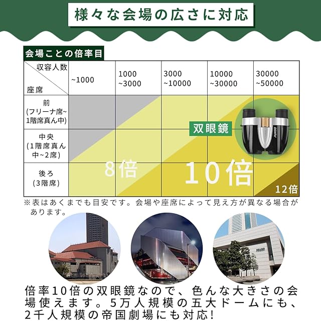 【10倍高倍率】遠距離の対象をくっきり捉え、スポーツ観戦やコンサートに最適。