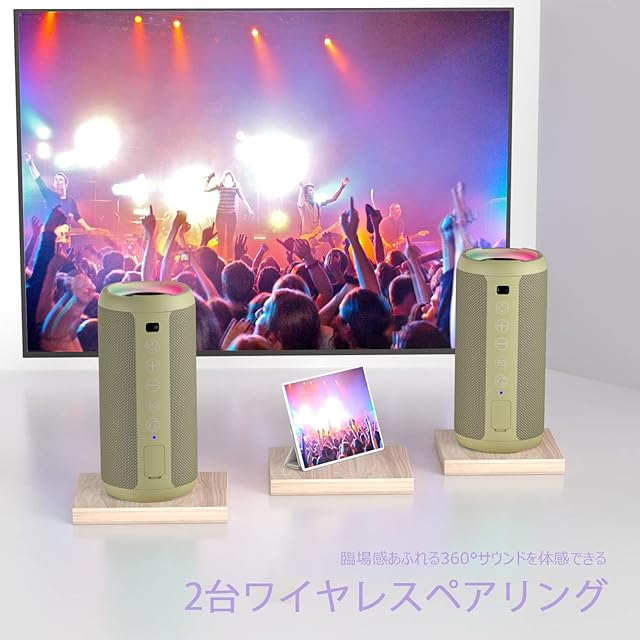 【Hi-Fiステレオサウンド&2台ペアリング機能】ブルートゥーススピーカーには2つの12W高性能オーディオ・ドライバーと進歩したデジタル信号プロセッサが搭載されており、どのボリュームでもクリアな高音、中音、特別に強化された低音が再生でき、最大の音量でも音は割れません。2つのスピーカーを同時に購入すると、2台ペアリング機能で2つのスピーカーをペアリングして、映画館のような360°ステレオサウンドを楽しんていただけます。