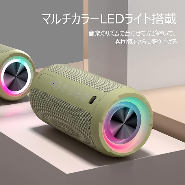 【RGB LEDライト搭載】このワイアレススピーカーはマルチカラーLEDライトを搭載し、いろんな色が変化し、ライトショーをあなたに差し上げます。スピーカー機能を利用しない場合、夜のテーマライトにしても全く問題ありません。休日、お祝いの日に、友達とパーディーを開く場合、ぜひこのスピーカーをONしてください。音楽を流させ、音楽のリズムが弾むとともにライトが変化し、あなたのパーティーを盛り上げます。