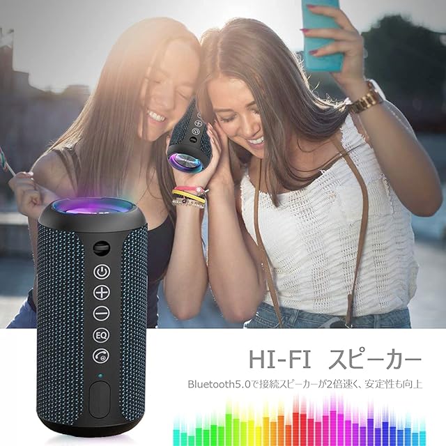 【RGB LEDライト搭載】このワイアレススピーカーはマルチカラーLEDライトを搭載し、いろんな色が変化し、ライトショーをあなたに差し上げます。スピーカー機能を利用しない場合、夜のテーマライトにしても全く問題ありません。休日、お祝いの日に、友達とパーディーを開く場合、ぜひこのスピーカーをONしてください。音楽を流させ、音楽のリズムが弾むとともにライトが変化し、あなたのパーティーを盛り上げます。