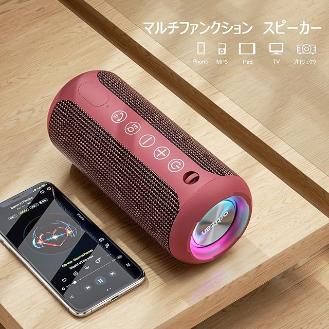 商品名:Ortizan Bluetooth スピーカー 防水IPX7でワイヤレス 30時間連続再生 24W出力ぶるーとぅーすすぴーかー ステレオのポータブルブルートゥーススピーカー マイク内蔵/2台ペアリング/TFカード対応 お風呂 スマホ PC 車用(レッド)