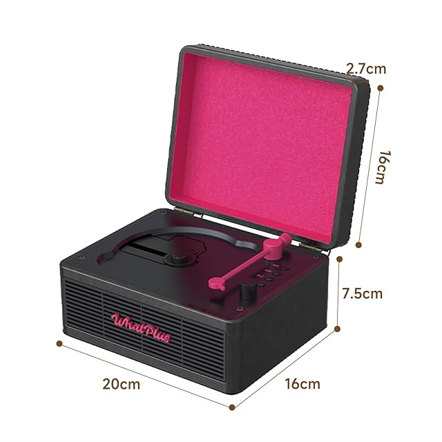 WhatPlus CDプレーヤー ワイヤレス対応 スピーカ内蔵 2000mAhバッテリー搭載 デスク イヤホン/AUX-IN/TFカード ストレス解消 (ブラック&ピンク)