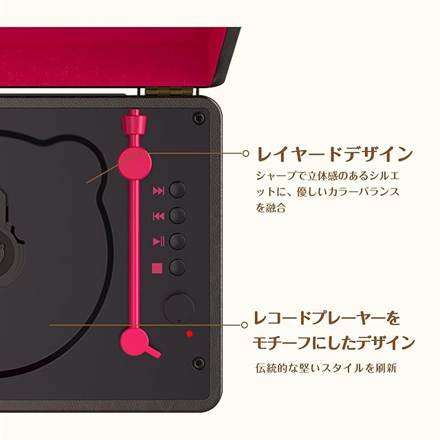 商品名:WhatPlus CDプレーヤー ワイヤレス対応 スピーカ内蔵 2000mAhバッテリー搭載 デスク イヤホン/AUX-IN/TFカード ストレス解消 (ブラック&ピンク)