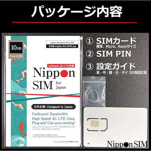 【対応SIMサイズ】マルチカット (標準、マイクロ、ナノサイズ切り替え可能) 【製品パッケージ】 SIMカード/SIMピン/多言語マニュアル