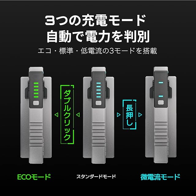 【革新的な着脱式バッテリー】ライドするだけで、フル充電された乾電池式モバイルバッテリーを入手します!Type-Cポートを搭載しており、スマホ、タブレットなど日常使用のデバイスを充電するために使用できます。5000mAhの大容量バッテリーを搭載可能、エネルギー変換率は約80%。1回の充電でiPhone15などをフル充電できます。電池交換後は自動的に電池残量が検出され、簡単にチェックします。 【22.5W急速充電】QC、PD、PPS、FCP、DCP、AFC、PEなどの主流の充電規格に対応しており、15W~20Wの高速充電が可能です。ご使用のデバイスが上記の充電規格に該当しない場合は、5V2A 10Wを使用して充電することもできます。