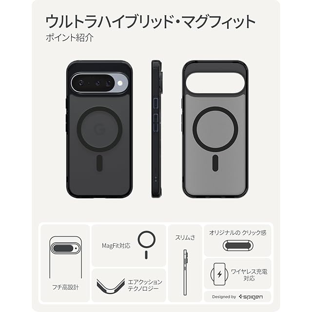 商品名:Spigen Pixel 10 / 10 Pro ケース 半透明 指紋防止 二重構造 米軍MIL規格 ウルトラ・ハイブリッド・マグフィット ACS09703