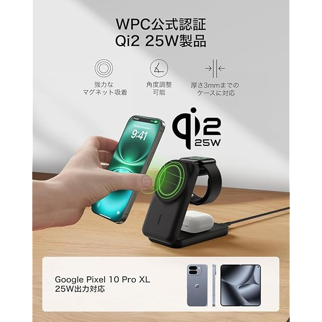 【New Qi2 25W 充電器】Qi2 25W 対応デバイスに高速で効率的な充電を提供します。