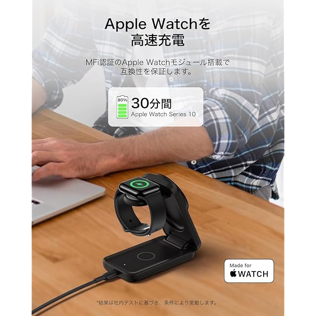【3-in-1充電】iPhone、Airpods、Apple watchを同時充電できるので、ケーブルが散らかる心配なし。