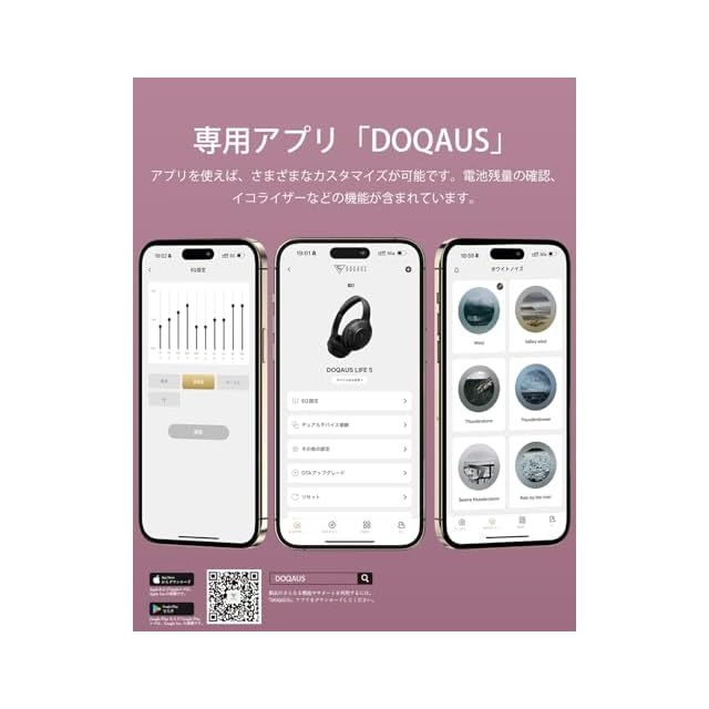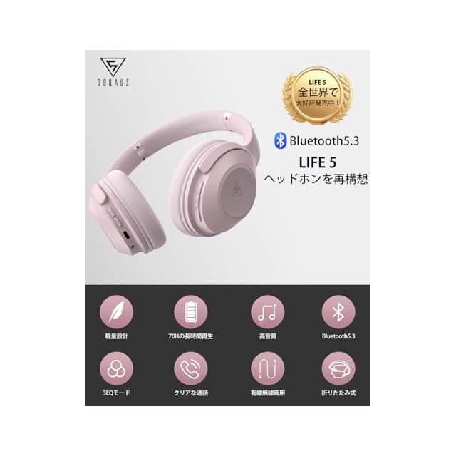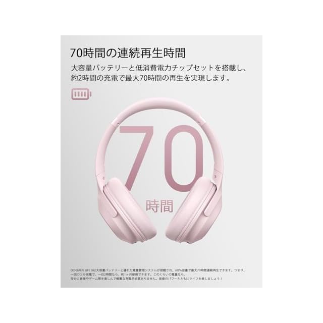 商品名:DOQAUS(ドカアス) ヘッドホン Bluetooth5.3 ワイヤレス 最大70時間連続再生 3EQモード 有線無線両用 AAC対応 マルチポイント マイク内蔵 密閉型 オーバーイヤー PC・スマホ・ウォークマン対応 軽量 slim版 LIFE5 (ピンク)