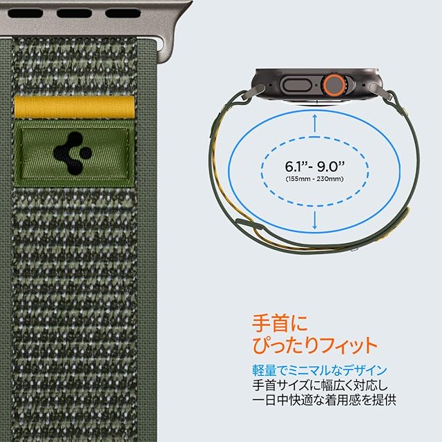 Spigen Apple Watch バンド 49/46/45/44mm【簡単でしっかり装着】Apple Watch Ultra3/Ultra2/Ultra/11/10/9/8/7/6/5/4/SE3/SE2/SE 対応 ストラップ ファブリック素材 通気性 アスレックス・エアAMP09035(アクティブ・グリーン)