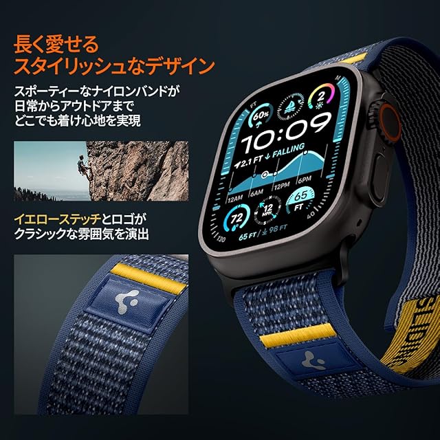 Spigen Apple Watch バンド 49/46/45/44mm【簡単でしっかり装着】Apple Watch Ultra3/Ultra2/Ultra/11/10/9/8/7/6/5/4/SE3/SE2/SE 対応 ストラップ ファブリック素材 通気性 アスレックス・エア AMP09036(アクティブ・ネイビー)