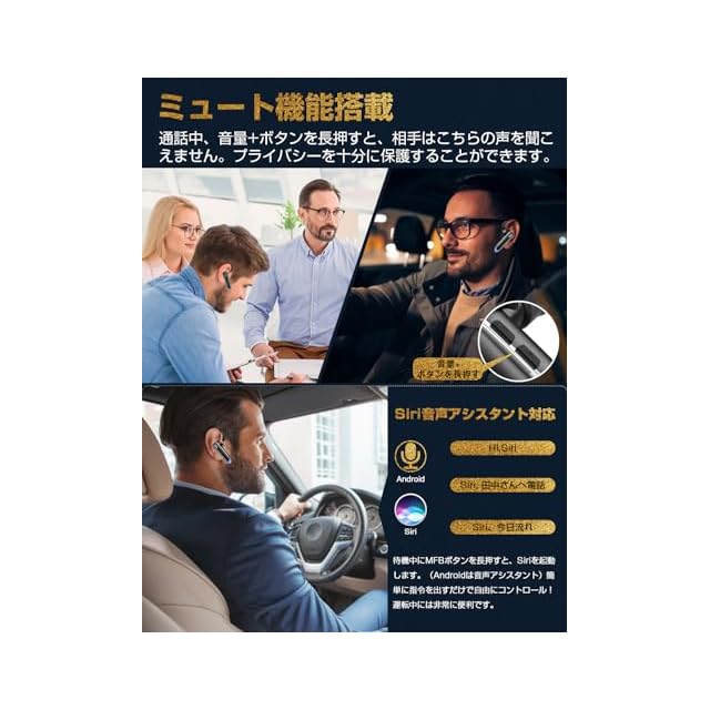 商品名:業界革新カナル型 ヘッドセット bluetooth ヘッドセット イヤホン 片耳 ブルートゥース 耳掛け式 片耳 最大16時間連続使用 ワイヤレスイヤホン 左右耳兼用 ハンズフリー通話可 マイク内蔵 SIRI/ミュート機能 CVC8.0ノイズキャンセリング 快適装着 2台同時接続可能 運転/在宅勤務/テレワーク/LINEチャット/zoom会議/ビジネスチャット等に対応