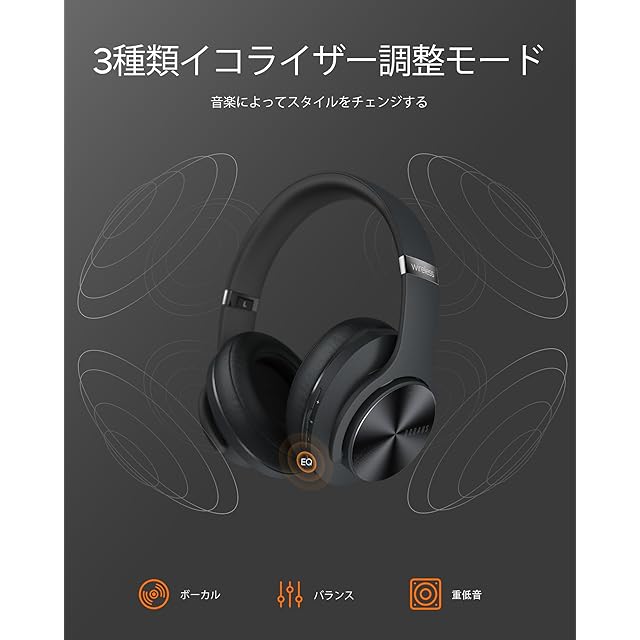 DOQAUS(ドカアス) ヘッドホン Bluetooth5.3 ワイヤレスヘッドホン 最大80時間連続再生 3EQサウンドモード オーバーイヤーヘッドホン マイク内蔵 有線対応 密閉型 メモリーフォーム 耳に優しい 携帯・パソコン・ウォークマン対応 LIFE3 (ブラック)