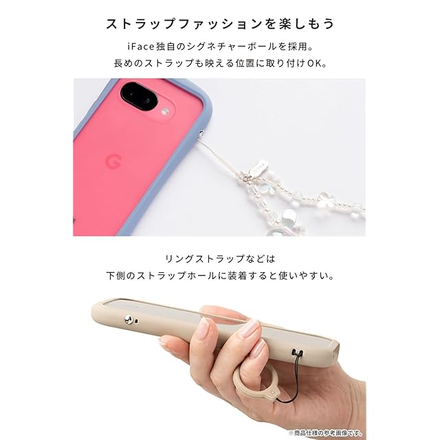 透明度が高い強化ガラスに、柔軟さがプラスされました。iFaceクリアケース「Reflection(リフレクション)」がGoogle Pixelシリーズで登場。ポリカーボネートとの合成素材を使用することで、着脱しやすくなっています。クリアで美しさが持続するReflectionケースを長くお楽しみください。シグネチャーボール搭載でストラップの付け方アレンジが今まで以上に広がります。