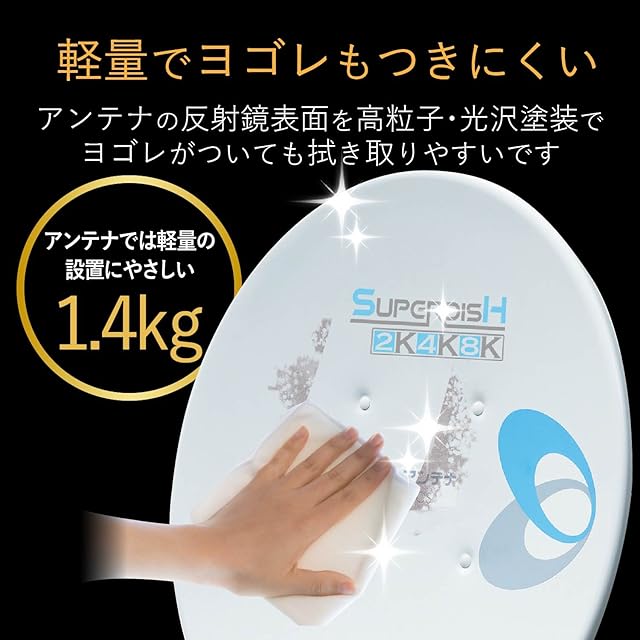 アンテナの反射鏡の表面を高粒子 光沢塗装にしましたので、従来品と比べ汚れがついても拭き取りやすくなっています。