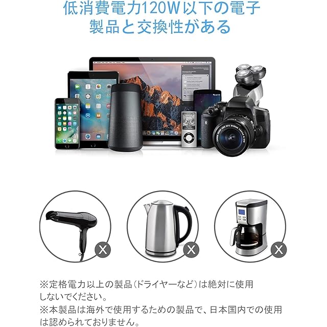 変圧器海外旅行用 - コンパクトでポータブル、コードも取り外し可能で海外旅行に持っていく際にとても便利です。※本製品は日本国内では使用しないでください。PLEASE DO NOT USE IN JAPAN。※許容消費電力は120Wなので、使用される電気機器の合計消費電力が120Wを越えないように十分ご注意ください。※ヘアドライヤーは使用できません