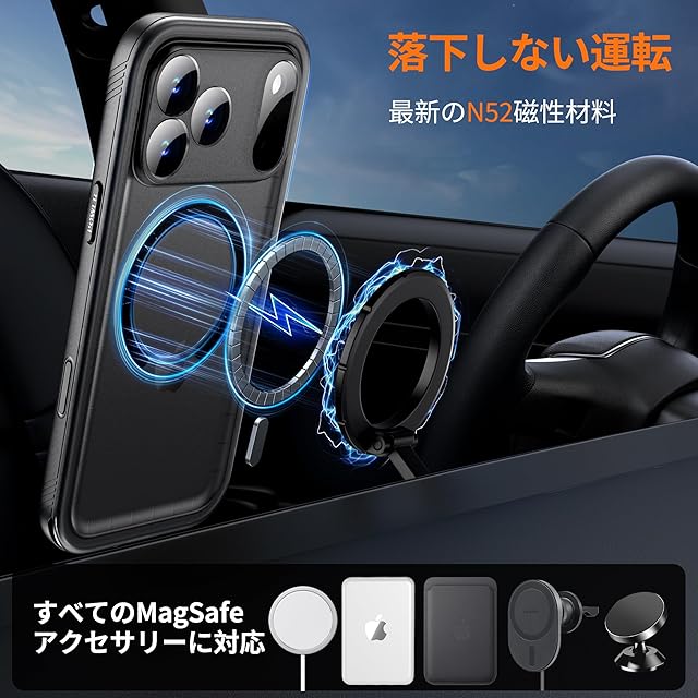 【強力磁力吸着 & 新しい撮影体験】– 17 Pro「3眼レフ-6.3インチ」専用の防水ケースには、35個の強力なN52磁石を内蔵。充電器にしっかり固定できます。財布、リング、モバイルバッテリー、車載ホルダー、MagSafeアクセサリーに対応。Cozycaseは、カメラコントローラーに人間工学に基づく凹みを施し、IP68規格の防水膜と組み合わせることで、裸機のようなカメラ操作を実現します。