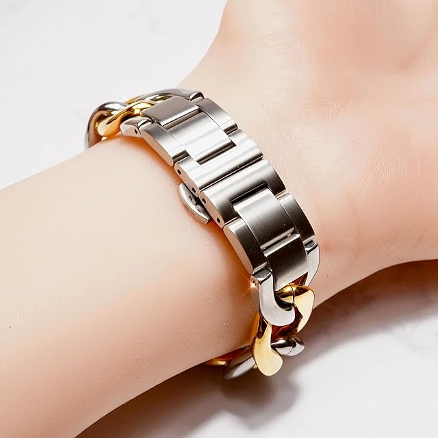 Royce&Roland Apple watch チェーンバンド バタフライバックル おしゃれ アップルウォッチ 時計 バンド (ステンレス/シルバー) レディース メンズ ギフト プレゼント (44mm 45mm 46mm 49mm, シルバー/ゴールド)