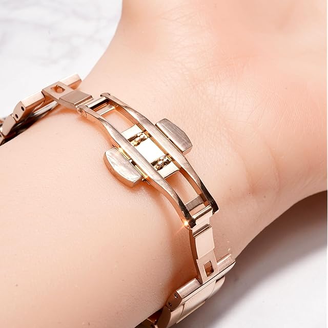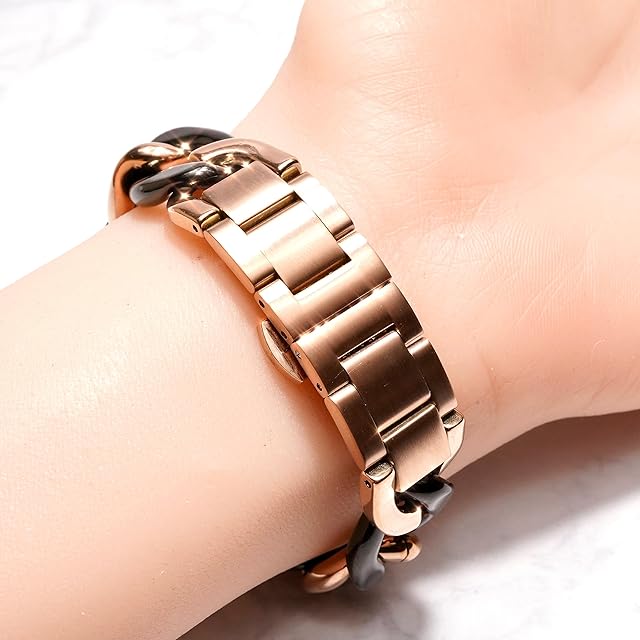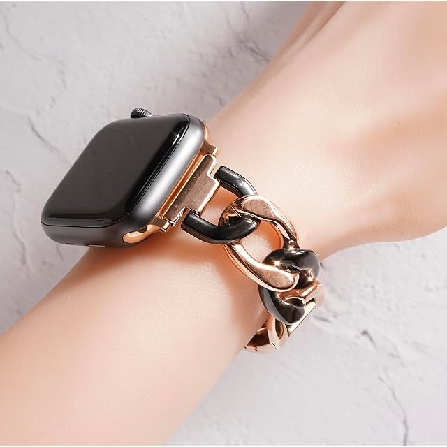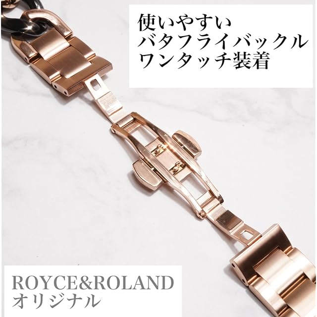 Royce&Roland Apple watch チェーンバンド バタフライバックル おしゃれ アップルウォッチ 時計 バンド (ステンレス/シルバー) レディース メンズ ギフト プレゼント (44mm 45mm 46mm 49mm, ピンクゴールド/ブラック)