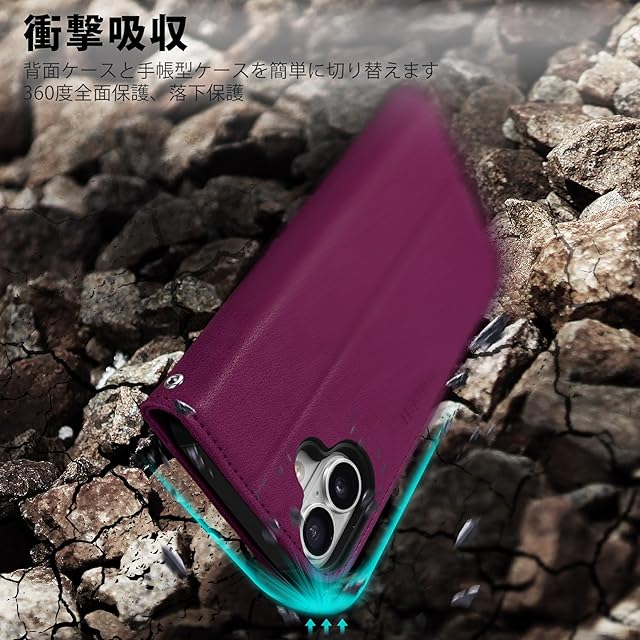 【iPhone17対応手帳型ケース】この2 IN 1分離式手帳型ケースはiPhone17(2025年発売6.3インチ)にのみ対応します。他の機種には対応しません。ご注意:ケースを選んで買う時、ご携帯の機種を十分ご確認の上、ご注文頂きますようお願い申し上げます。外部には上品な合皮が使用されており、見た目も触り心地も非常に良いです。インナーケースにはTPU素材とPC素材を組み合わせ、脱着が簡単でありながら、スマホをしっかり保護します。