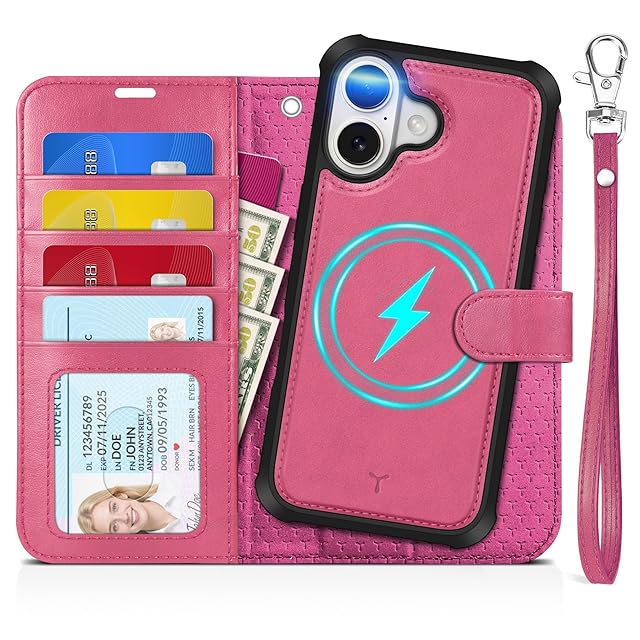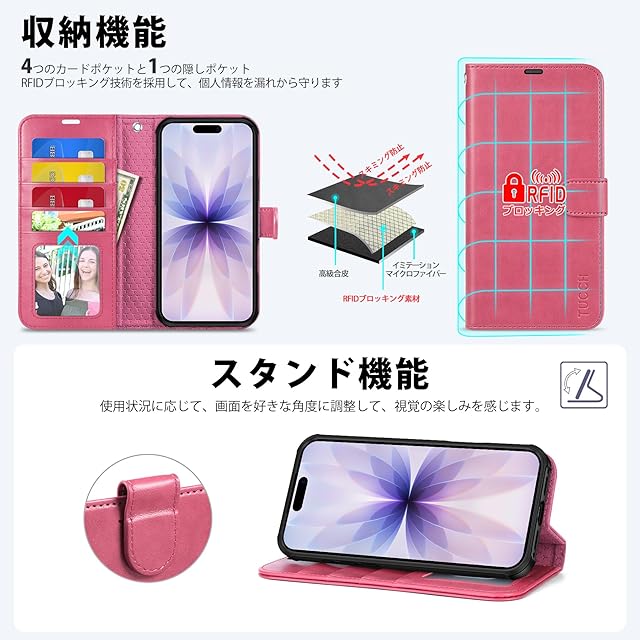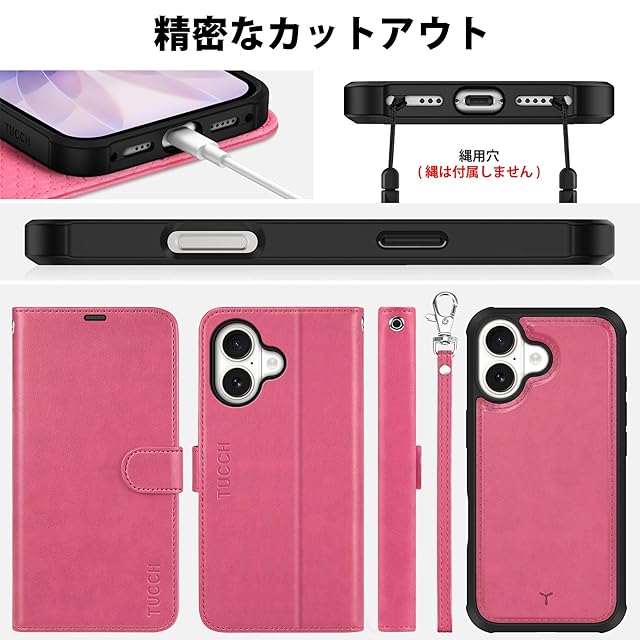 商品名:TUCCH iPhone 17 対応 ケース手帳型 2 in 1 分離式 6.3インチ ストラップ付き 取り外し可 RFIDブロッキング 4つカードポケット ストラップホール 横置きスタンド機能 衝撃吸収 全面保護 PU合皮 あいふぉん17対応携帯ケース 2025年発売 5G ホットピンク