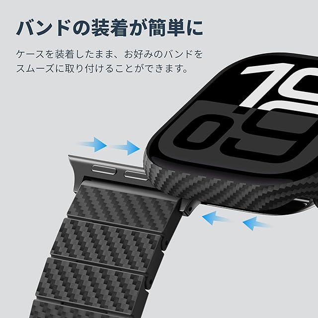 【カーボン風デザイン】珍しい素材で作られたアップルウォッチ 11 ケースはカーボン風な高級感が溢れて、様々なバンドで着用可能。スマートウォッチ本体とピッタリして、どんなタイプのバンドにも似合っています。
