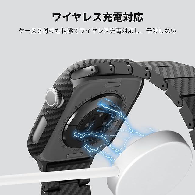 【ジャストフィット感】Apple Watch 11/10に基づいて精密に設計しているため、Watchのデザインを損なわない薄さとなっています。装着したまま各ボタンの操作がスムーズに出来ます。充電器への接続方法も未装着時と変わりません。ご注意:Apple Watch本体のサイズにピッタリと当てはまるので、フィルムに干渉する可能性があります。予めご了承ください。