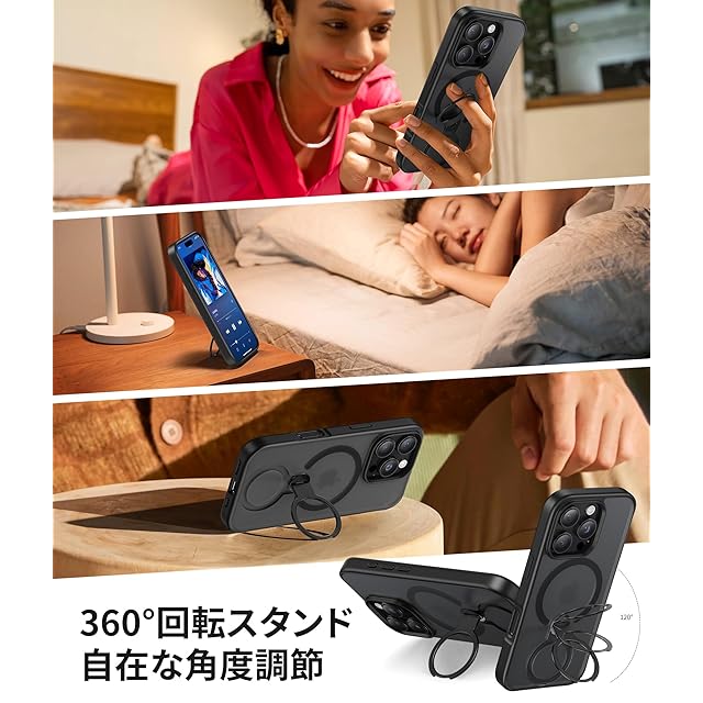 商品名:NIMASO iPhone 16pro ケース【米軍MIL規格 MagSafeアクセサリー対応 360°回転スタンド 横縦両立 指紋防止】 落下防止 耐衝撃 いphone 16 pro 用 半透明 ワイヤレス充電対応 アイフォン16pro用 ケース 6.3インチ 磁吸強化(黒羽シリーズ)ブラック DSC25D1597