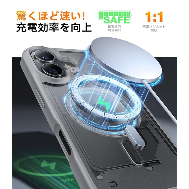 【えっ、こんなに速いの!? ワイヤレスで数分フル充電に!】面倒なケーブルとはさようなら、ワイヤレス充電がもっと楽に!iPhone 16(用) には革新的な 20W ワイヤレス充電機能が搭載されており、このケースの背面にはハルバッハ特許のマグネット技術が活用されている。高い効率と安定性をし、iPhone (用)が常に十分な電力を保つ。いつでもどこでも便利な 20W ワイヤレス高速充電を手軽に楽しめる!対応機種:iPhone 16 用 ケース