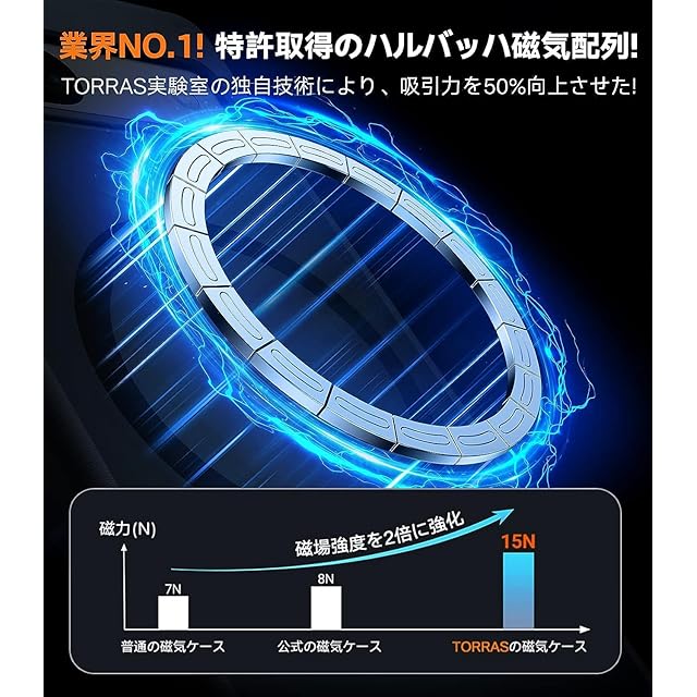 【本当か!特許を取得したマグネット!これこそ驚異的な安定性だ!】TORRASのGuardian Magは、世界で1100万個以上売れて大成功を収めて、多くのユーザーの好みの選択肢になっている。最新のGuardian - MagはiPhone 16 に対して、より優れた保護と磁力を提供できる。特許技術に基づくN52マグネットは最適な配列で設計されて、他のケースの磁石より40%も強い。ワイヤレス充電から車載ホルダーまで、幅広いMagSafeアクやセサリーと簡単に互換性がある。また、磁気リングは素材とサイズが携帯に組み込まれた構造に正確に合致して、公式の基準を満たしている。軽く吸着して、瞬時に強力で精密にフィットする。迷わずこのiPhone 16 pro 用のケースを使える。どんな揺れにも強く、しっかり固定されているから、簡単に外れない。
