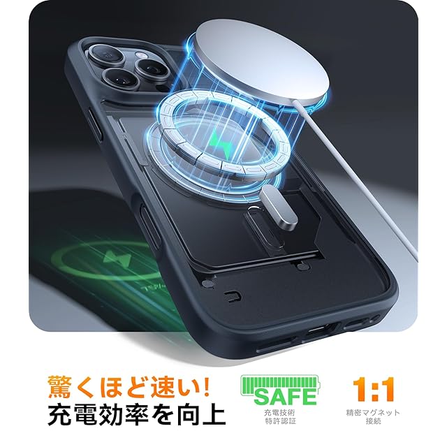 【えっ、こんなに速いの!? ワイヤレスで数分フル充電に!】面倒なケーブルとはさようなら、ワイヤレス充電がもっと楽に!iPhone 16 pro(用) には革新的な 20W ワイヤレス充電機能が搭載されており、このケースの背面にはハルバッハ特許のマグネット技術が活用されている。高い効率と安定性をし、iPhone (用)が常に十分な電力を保つ。いつでもどこでも便利な 20W ワイヤレス高速充電を手軽に楽しめる!対応機種:iPhone 16 pro 用 ケース