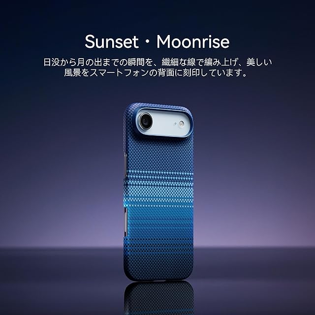 【Sunset・Moonrise配色--人生の瞬間を再現】人気アイテム「Sunset Moment」を再現、日没から月の出までのブルーな時間を織り込みました。夕陽の残照がまだ遠くないこの時間、すでに月の影は見えています。空は涼しげな色から暖かな色へと移り変わり、静かで豊かな青を見せてくれます。一日の終わりの夕焼けと月の出の間の中に、癒しと自由な空気を感じましょう。【パッケージ内容】iPhone Air対応カバーケース*1枚、黒色の調整用シート3枚(自由にケースのフィット感を調整する)。