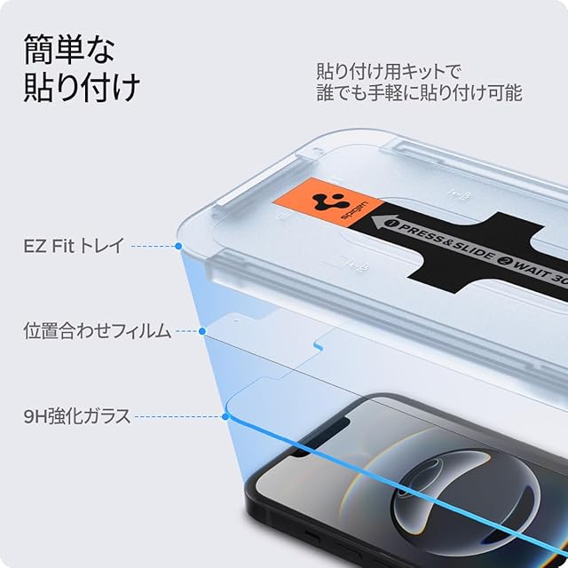 商品名:Spigen iPhone 16e 覗き見防止 ガラスフィルム iPhone 14/13/13 Pro 対応 貼り付けキット付き 9H強化ガラス 2枚入 ナノコーティング 飛散防止 AGL03388