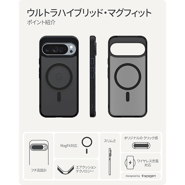 商品名:Spigen Pixel 10 Pro XL ケース 半透明 指紋防止 二重構造 米軍MIL規格 ウルトラ・ハイブリッド・マグフィット ACS09726
