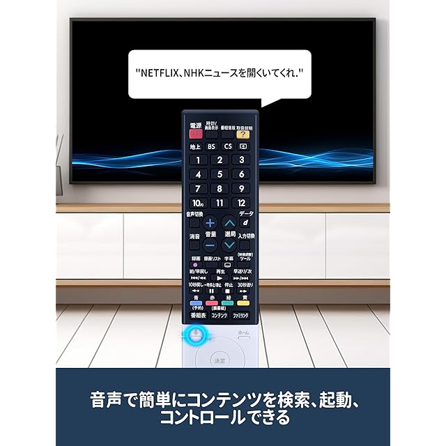 【音声認識機能付き】リモコンは音声検索が可能で、音声認識ボタンを押しながらリモコンに話しかけることで、好きなタイトルの検索や再生を操作することができます。音声機能は使用前に設定が必要ですので、マニュアルの手順に従って設定してください、予めご了承ください。