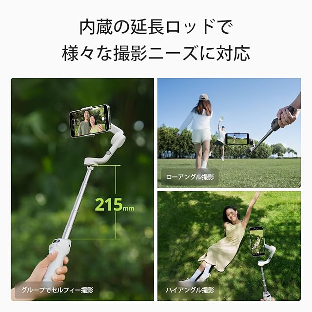 ✅[撮影ガイド&ワンタッチ編集で、かんたん映像制作] - このスマートなDJIジンバルには、幅広い撮影ガイドが搭載され、ダイナミックなカメラワークなど、分かりやすく撮影方法を教えてくれます。また、LightCutアプリを使って、どこにいても簡単に映像を編集できます。