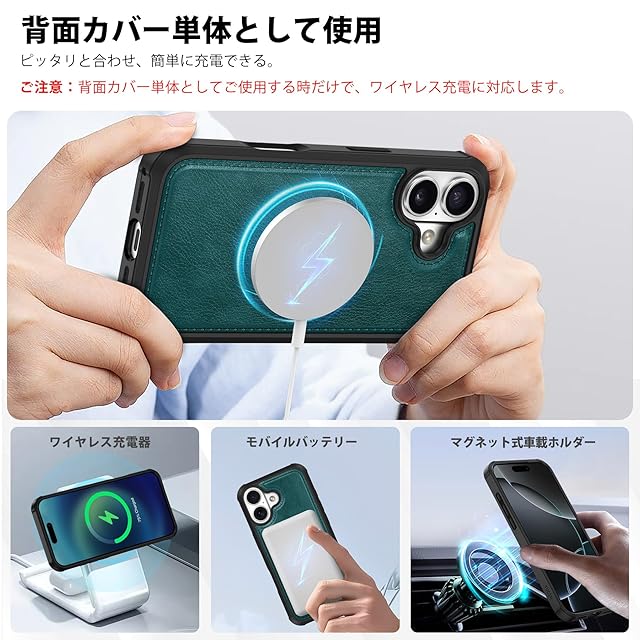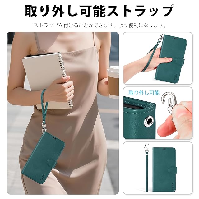 【2 in 1分離型&ストラップ付き】手帳型ケースとインナーケースは磁力で吸着され、用途に応じて簡単に取り外しが可能です。手帳型にも背面カバーにもなる便利な2in 1分離型ケースです。背面カバー単体として使用する際は、ワイヤレス充電に対応しています。手帳型ケースの上部にはストラップホールがあり、ストラップを手首に通せば、落下の心配もありません。背面カバーの下部にも縄用穴があり、お好きな縄を付けることができます。ご注意:付属のストラップは背面カバーの穴には使用できません。