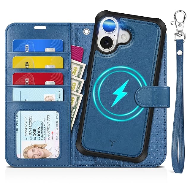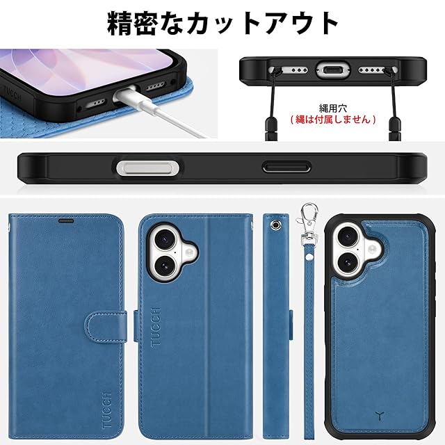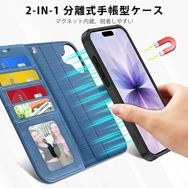 商品名:TUCCH iPhone 17 対応 ケース 手帳型 2 in 1 分離式 6.3インチ ストラップ付き 取り外し可 RFIDブロッキング 4つカードポケット ストラップホール 横置きスタンド機能 衝撃吸収 全面保護 PU合皮 あいふぉん17対応携帯ケース 2025年発売 5G レイクブルー