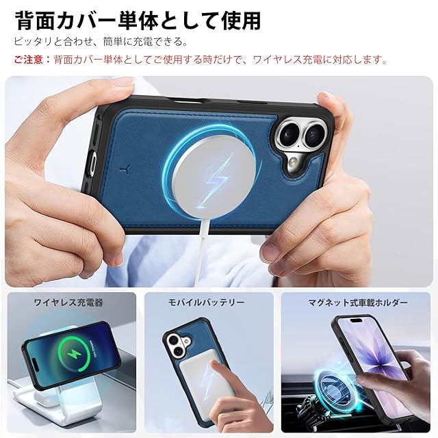 【2 in 1分離型&ストラップ付き】手帳型ケースとインナーケースは磁力で吸着され、用途に応じて簡単に取り外しが可能です。手帳型にも背面カバーにもなる便利な2in 1分離型ケースです。背面カバー単体として使用する際は、ワイヤレス充電に対応しています。手帳型ケースの上部にはストラップホールがあり、ストラップを手首に通せば、落下の心配もありません。背面カバーの下部にも縄用穴があり、お好きな縄を付けることができます。ご注意:付属のストラップは背面カバーの穴には使用できません。