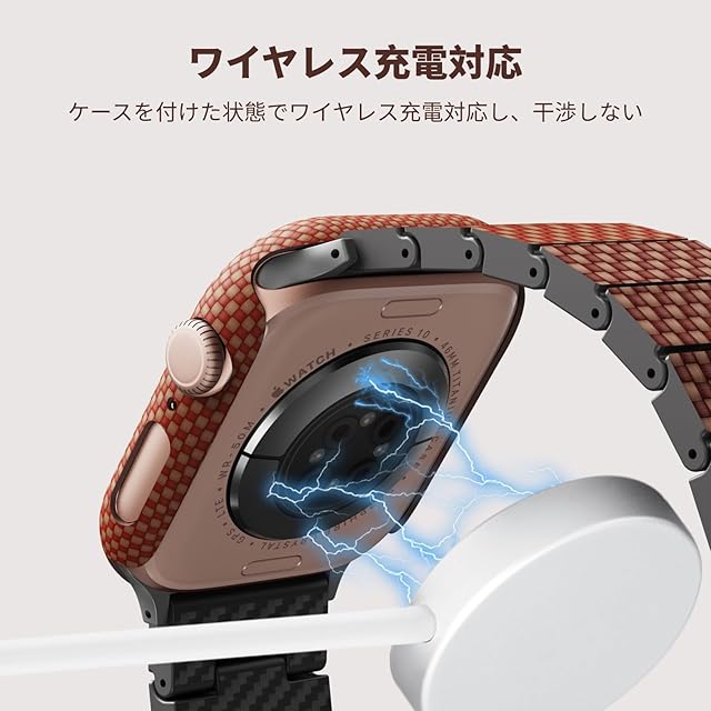 【ジャストフィット感】Apple Watch 11/10に基づいて精密に設計しているため、Watchのデザインを損なわない薄さとなっています。装着したまま各ボタンの操作がスムーズに出来ます。充電器への接続方法も未装着時と変わりません。ご注意:Apple Watch本体のサイズにピッタリと当てはまるので、フィルムに干渉する可能性があります。予めご了承ください。