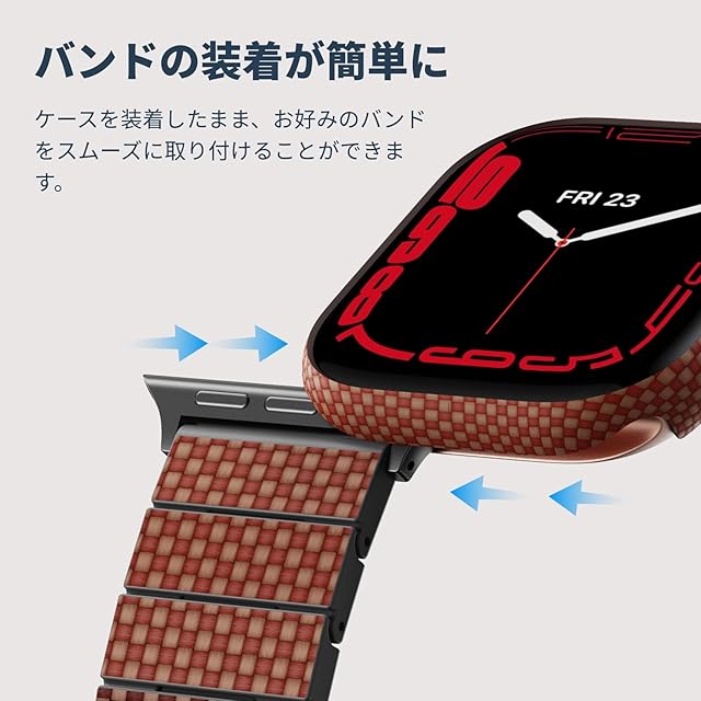 【カーボン風デザイン】珍しい素材で作られたアップルウォッチ 11 ケースはカーボン風な高級感が溢れて、様々なバンドで着用可能。スマートウォッチ本体とピッタリして、どんなタイプのバンドにも似合っています。