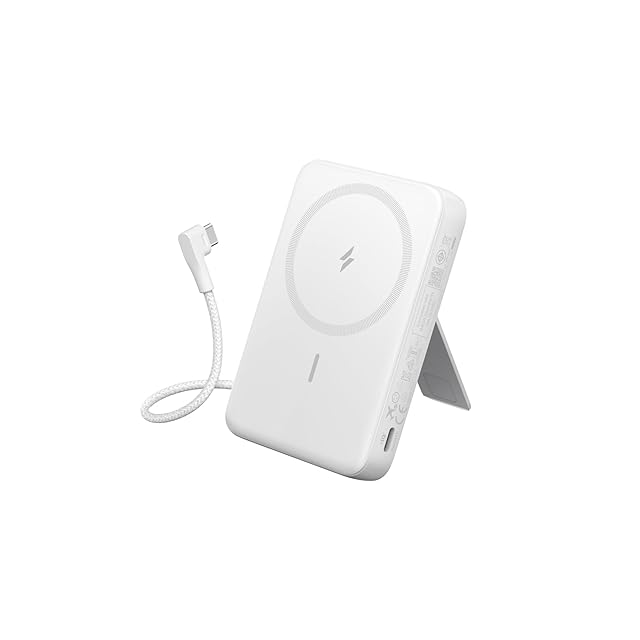Anker Zolo Power Bank (10000mAh, MagGo, Built-In USB-Cケーブル) マグネット式ワイヤレス充電対応 10000mAh コンパクトモバイルバッテリー【マグネット式/ワイヤレス出力(7.5W) / 一体型USB-C ケーブル30W出力 / 20W入力 / PSE技術基準適合】(ホワイト)