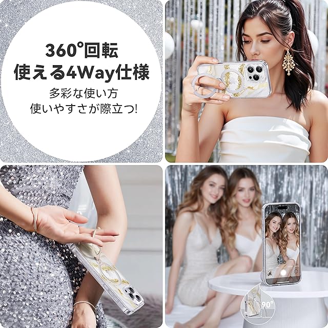 商品名:【透き通る上質感・定点360°回転】CASEKOO iPhone 16 Pro Max 用ケース キラキラ クリア 米軍規格保護 フィット感 MagSafe対応 最大25W急速充電対応 横縦両立 角度自在 超強磁力 耐衝撃 高耐久性 ラップホール付き 透明 黄変防止 いphone16promax 用ケース 6.9インチ「MagicStand Pro Glitter」(ホワイトマーブル)