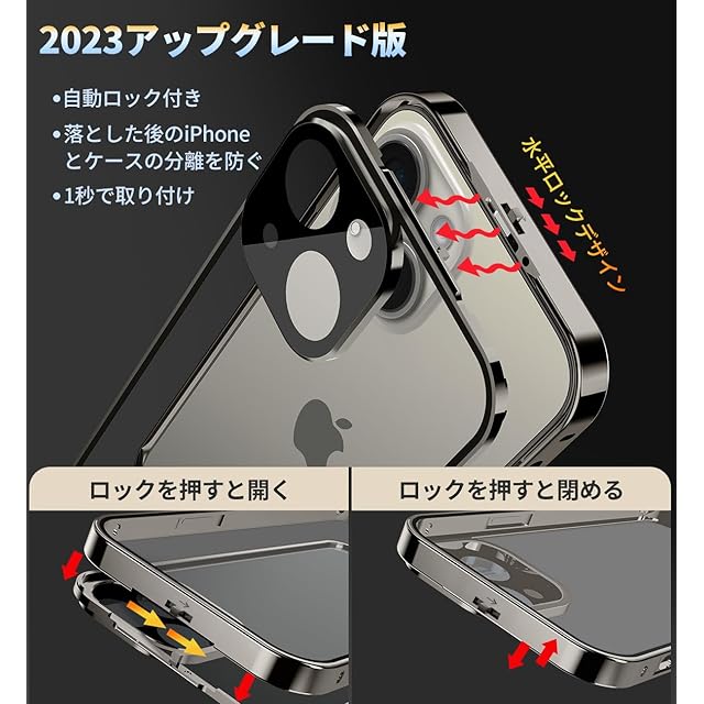 【ロック機能付き・1秒で取り付け・一体型レンズ保護付き】革新的な技術、このiPhone15 両面ケースは上部にスライドボタン式のロックがあり、前後のケースをしっかり固定します。上部のボタンを押すだけで、ロックの解除も簡単、取り付けで開く非常に便利です。こちらのあいふぉん15ケースであなたの大切なスマホを守ってあげてください!このiPhone15 ケースのバンパーとレンズ保護フィルムが一体型になっており、背面カメラ周りを覆い、カメラへの傷を防ぐ、カメラレンズ保護設計です。★レンズの保護フィルムの必要はありません。(注意:この製品を使用する際には、説明書を読んでからインストールすることを強くお勧めします。取り付けるとき、後カバーの下部の凸凹部分を確認してください。後カバーと前カバーの底部が位置合わせされ、ぴったりとフィットしていることを確認してください。)