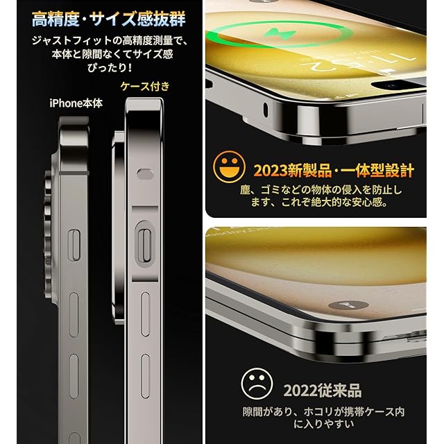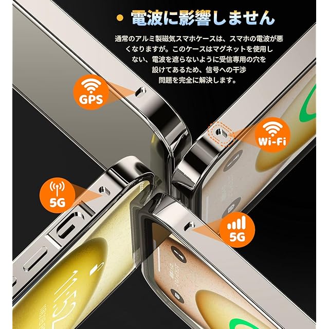 【メタルフレーム・背面クリア・信号干渉なし】このスマホケース iPhone15は、高品質の航空アルミニウム合金製フレームを使用しており、おしゃれで高級感が溢れています。酸化の表面処理により保護カバーは擦れに強い、傷つきにくい。このiPhone15全面保護ケースの背面として高透過率に経ったガラス素材を用い、本体の色をより良く楽しめる、より一層高級感を引き出せます。本体の美しさをエンジョイする際に、ご好みの写真・ステッカーなども入れ、カスタマイズが可能です。このiPhone15 ケースは信号強度が影響を受けないように設計されています。ケースはマグネットを使用しない、電波を遮らないように受信専用の穴を設けてあるため、信号は良好で、WiFiは遮られていません。