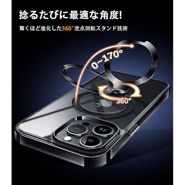 商品名:【唯一無二!360°回転CD スタンド】ZapNet iPhone 15 Pro Max用 クリア ケース Magsafe 対応 [定点スタンド・超絶安定性][本体を再現・極透明]ストラップホール付き マグセーフ ワイヤレス充電対応 黄変防止 米軍MIL規格取得・耐衝撃 アイホン15プロマックスケース マホケース15 Pro Max 人気 6.7インチ(ブラック)